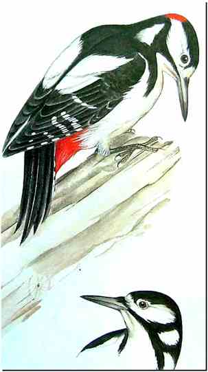 "Il", bien sûr, c'est le mâle car, chez les pics, le père de famille n'est nullement exempté de cette fastidieuse corvée qui consiste à passer des heures et des heures allongé sur des oeufs qu'il faut en permanence tenir bien au chaud. Beaucoup de spécialistes seraient même d'accord pour dire que le malheureux couve plus souvent qu'à son tour!... Chez les pics en effet, la femelle entend bien ne pas être la seule à couver. Cette légitime exigence donne quelquefois lieu à quelques petites altercations, ainsi qu'en témoigne ce document, rapporté par l'envoyé spécial de "La Hulotte". |